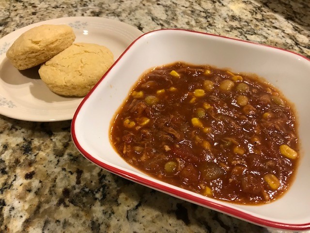 So, who is right? Who knows. But what I DO know is a bowl of Brunswick Stew with some cornmeal biscuits on the side is a perfect meal on a cold day!