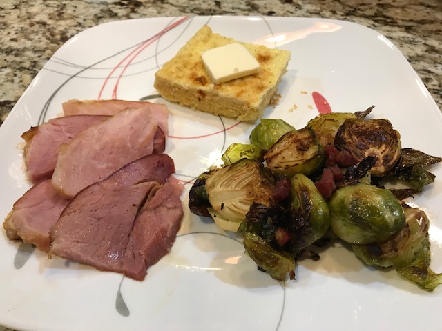 There is so much history in Virginia! It was the home to many of our country’s Founding Fathers, as well as some of the best preserved historical culinary traditions! At Mount Vernon, Martha Washington was known to have a “ham boiled daily” so that the famous Virginia pork could be enjoyed at every meal. Thomas Jefferson was an avid farmer, and his are the first records of the planting of Brussels Sprouts in North America in 1812. Spoon bread is thought to have originated with the Native Americans, but it is definitively in a cookbook from 1847. So, this meal feels fairly colonial, in the yummiest possible way!
