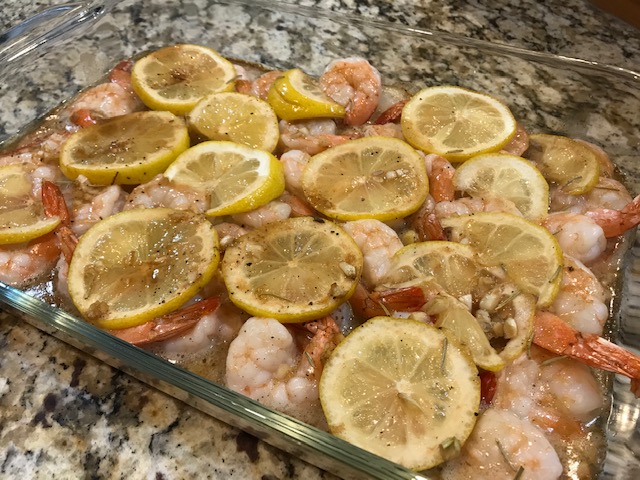 Step 3: Rinse the shrimp with cold water, drain well, and pat dry. In a large baking dish, lay down a layer of sliced onions. Place the shrimp on top of the onions in a single layer. Lastly, cover the shrimp with a layer of sliced lemons.