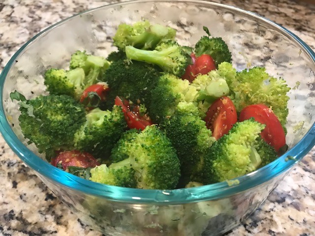 Step 1: Place the broccoli and 2 Tbs of water in a microwave-safe bowl. Cover and microwave on high for 3-4 minutes, or until the broccoli is just tender.
