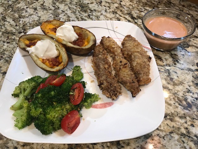 - Use 1 hand to dip the food is the egg wash, place the egged food in the dry station, use your OTHER hand to coat the food in breading.