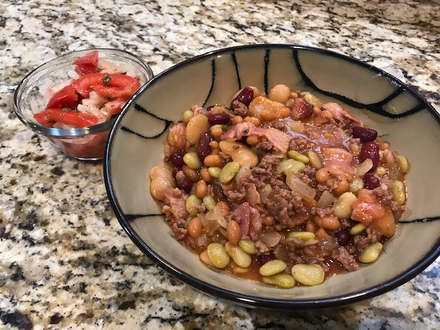 Wyoming is one of those romantic, wide-open spaces that calls to the wild spirit in all of us. Ok, maybe that’s just me. Wyoming IS home to one of the places on my bucket list though, Yellowstone National Park! Hot springs, geysers, canyons, and fresh air all around make this one of America’s most iconic destinations. It is also the home of our entrée recipe! The Roosevelt Lodge was built in 1919 near a site where Yellowstone enthusiast President Teddy Roosevelt once camped. It now serves as a restaurant and cabin complex for the park, and they hand out their famous beans recipe as a souvenir. So, we’ll get to enjoy a little of the Yellowstone spirit with a side of tomato and onion salad that is served pretty heavily by ranch cooks across the state! Sounds like an adventure to me!